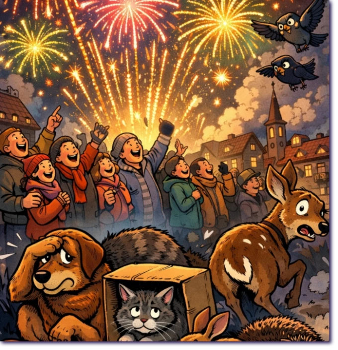 Wildtiere werden durch die plötzlichen Knallgeräusche aufgeschreckt, verlieren ihre Orientierung und erleben die Silvesterzeit als eine Phase tiefer Verunsicherung und Bedrohung.