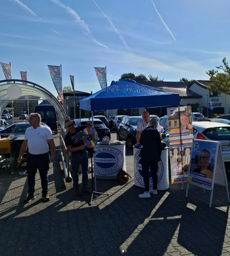 Kommen Sie vorbei, lernen Sie die Freie Wählergemeinschaft Korschenbroich e.V. persönlich kennen und erfahren Sie aus erster Hand, wofür wir stehen. Unser Team beantwortet Ihre Fragen, stellt unsere Ziele für die Stadt vor und freut sich auf den Austausch mit Ihnen.
