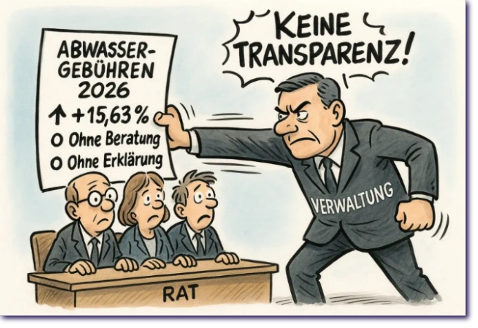 Verwaltung hebelt Transparenz aus – Abwassergebühren werden ohne echte Kontrolle durchgedrückt!